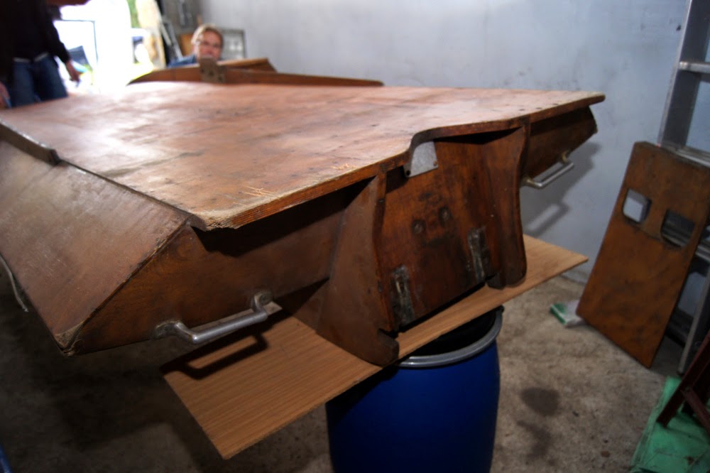 Ausserdem ist der Knickpunkt/linie klar definiert durch eine schwächung in der Platte, warum soll das denn sonst sein wenn nicht um das Holz an genau dieser Stelle zu biegen ?