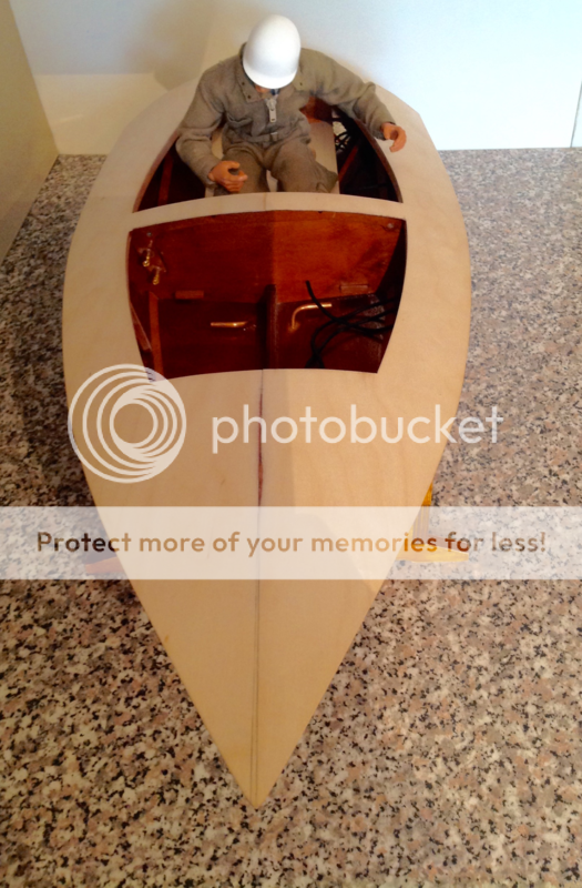The interiors of the technical area and cockpit have been covered with 12 layers of a water based laquer (solvents are too bad for my lungs); the hull, hopefully, is now completely finished, fully planked and the first accessories (cooling inlet and outlet pipes, connectors, pulleys, cables) have been fixed in place; i suppose it could be difficult to do it at a later stage.